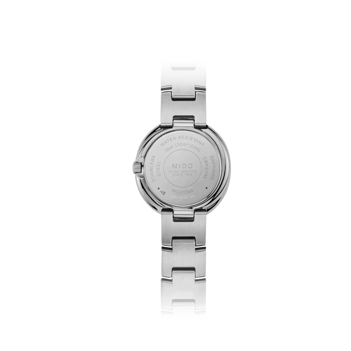 Su carátula turquesa con acabado satinado rayos de sol aporta un brillo vibrante y femenino, mientras que el acero inoxidable pulido eleva la estética a un nivel atemporal y sofisticado.
