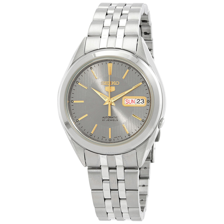 El Seiko SNKL19K1 pertenece a la icónica colección Seiko 5, ofreciendo una armoniosa combinación de diseño clásico y tecnología confiable. Su caja de acero inoxidable de 37 mm, junto a su esfera gris con detalles en dorado, aporta un toque sofisticado y elegante. Las manecillas e índices con acabado luminiscente garantizan una lectura clara en cualquier situación. Además, incorpora una práctica función de día y fecha ubicada en la posición de las 3 en punto.