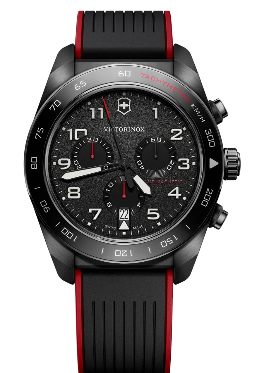El Reloj Victorinox Swiss Army Chrono Correa de Caucho Negro/Rojo combina la precisión suiza con un diseño audaz y deportivo. Parte de la colección Swiss Army, este cronógrafo refleja la esencia de la marca: funcionalidad, resistencia y estilo atemporal.